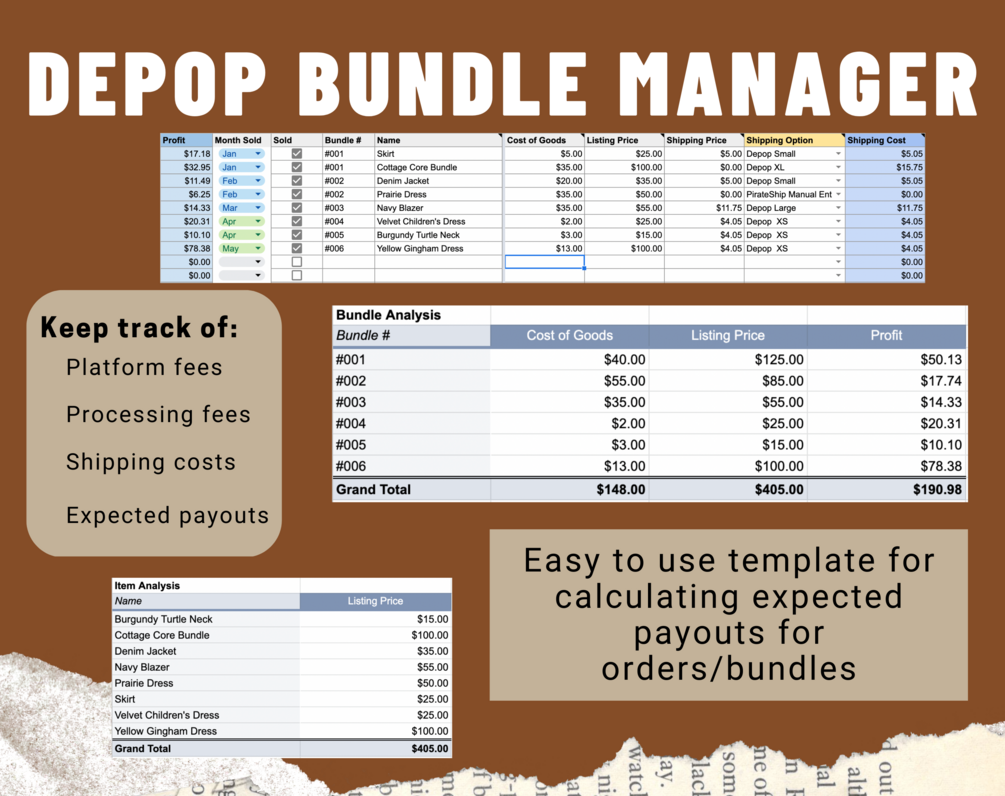 Google Sheets Template - Reselling Dashboard for Depop | Poshmark | Mercari & other Platforms